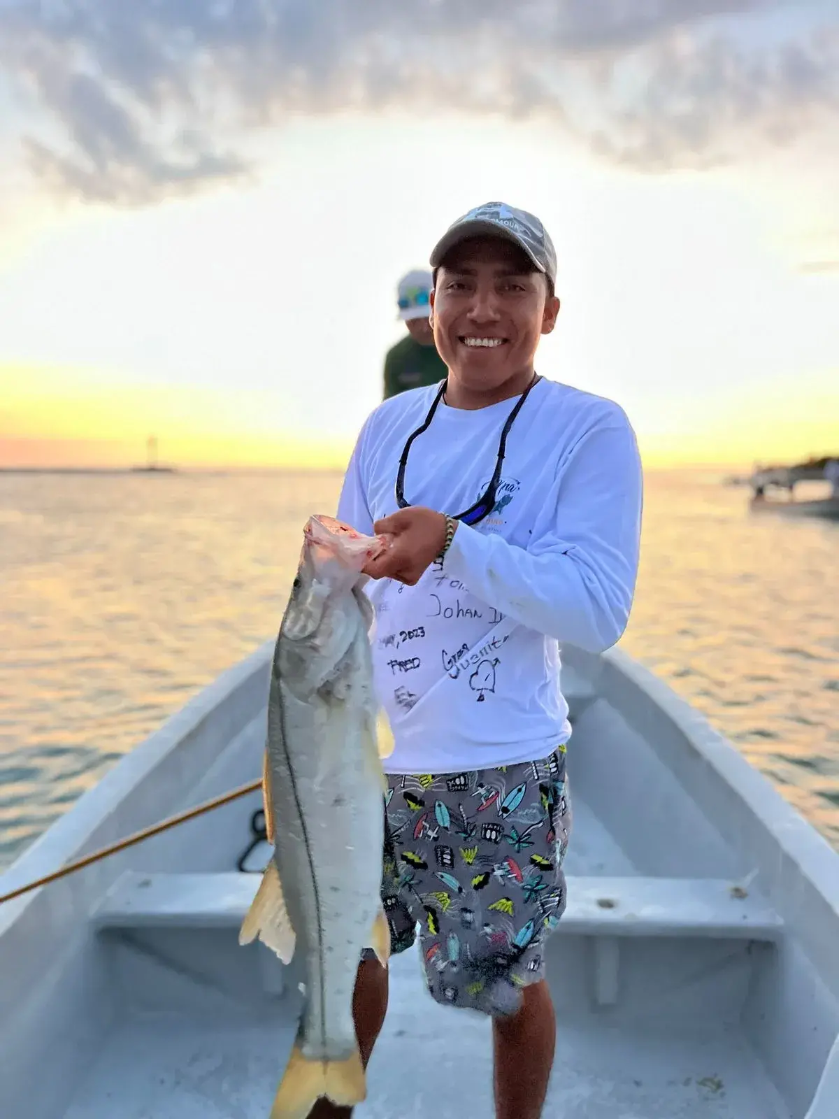 El encuentro de las corrientes del caribe y el golfo de mexico hacen de rio lagartos un paraiso para los amantes de la pesca deportiva, tanto en el estero como en mar abierto es posible pescar con las diferentes tecnicas que ofrecemos: pesca con mosca, pesca con spinning, pesca familiar y pesca con control. en la pesca familiar te llevamos a pescar y te enseñamos con diferentes técnicas de pesca a capturar algunos peces que seguro podrás disfrutar con tu familia.